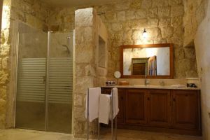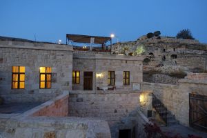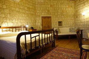 2 katlı evimiz, alt kattaki avludan üst kattaki manzaralı terasa merdiven ile bağlanmıştır. Alt katta birisi kaya oyma, diğeri ise taş kemerli 2 yatak odası,1 banyo ve mutfak; üst katta ise 1 yatak odası, 1 oturma odası, 2 banyo ve tam donanımlı bir mutfak vardır. Arabanızı evin girişindeki özel park yerine bırakabilirsiniz.